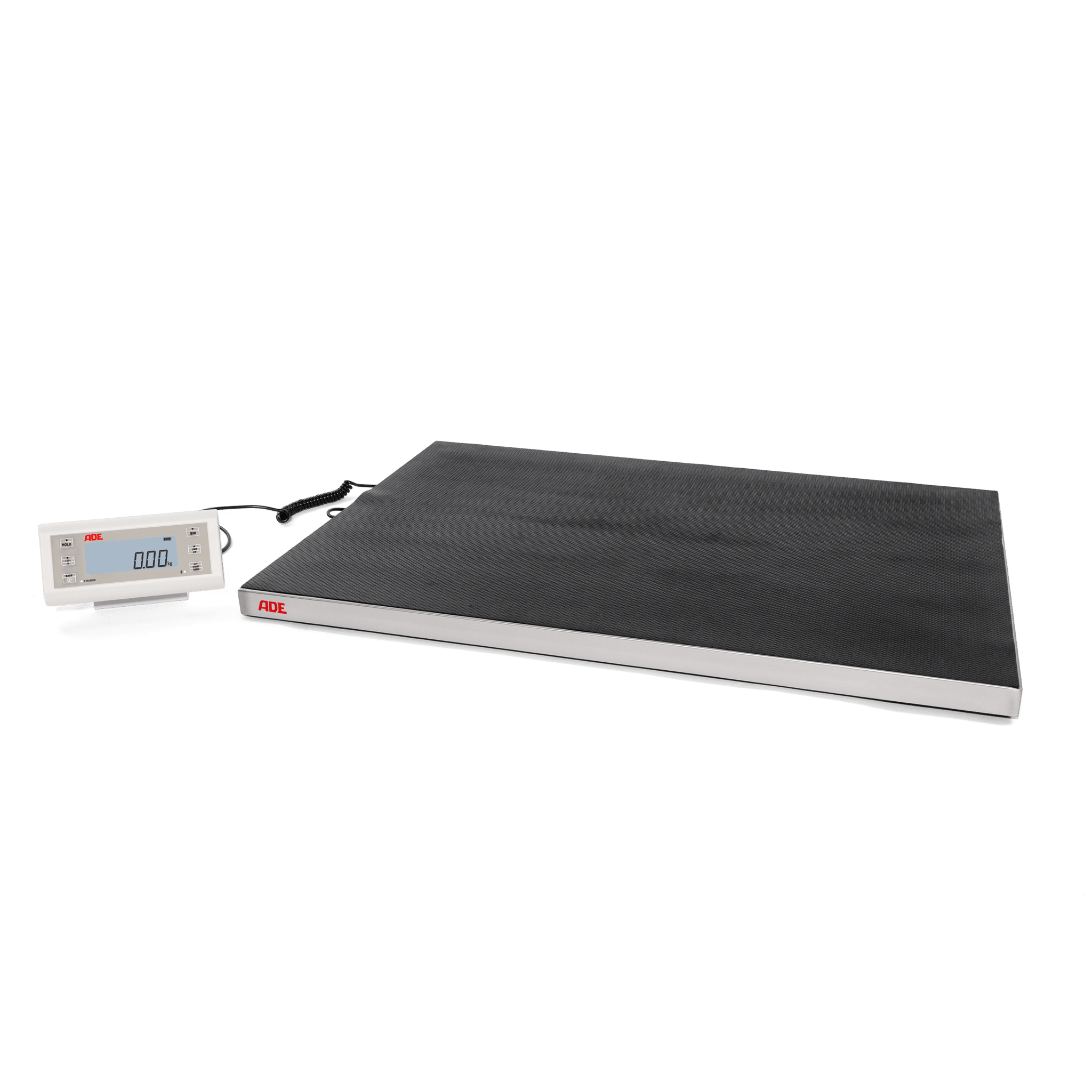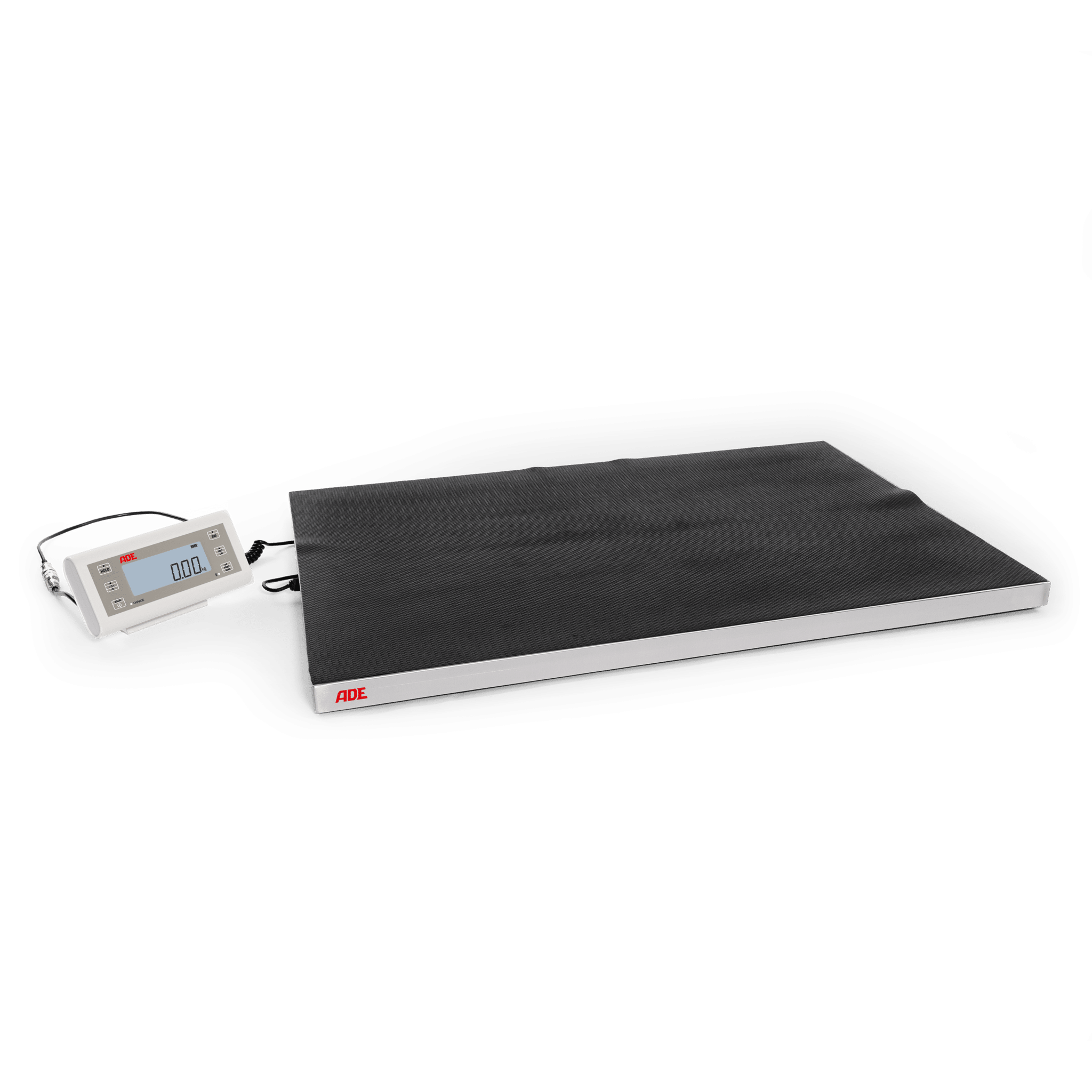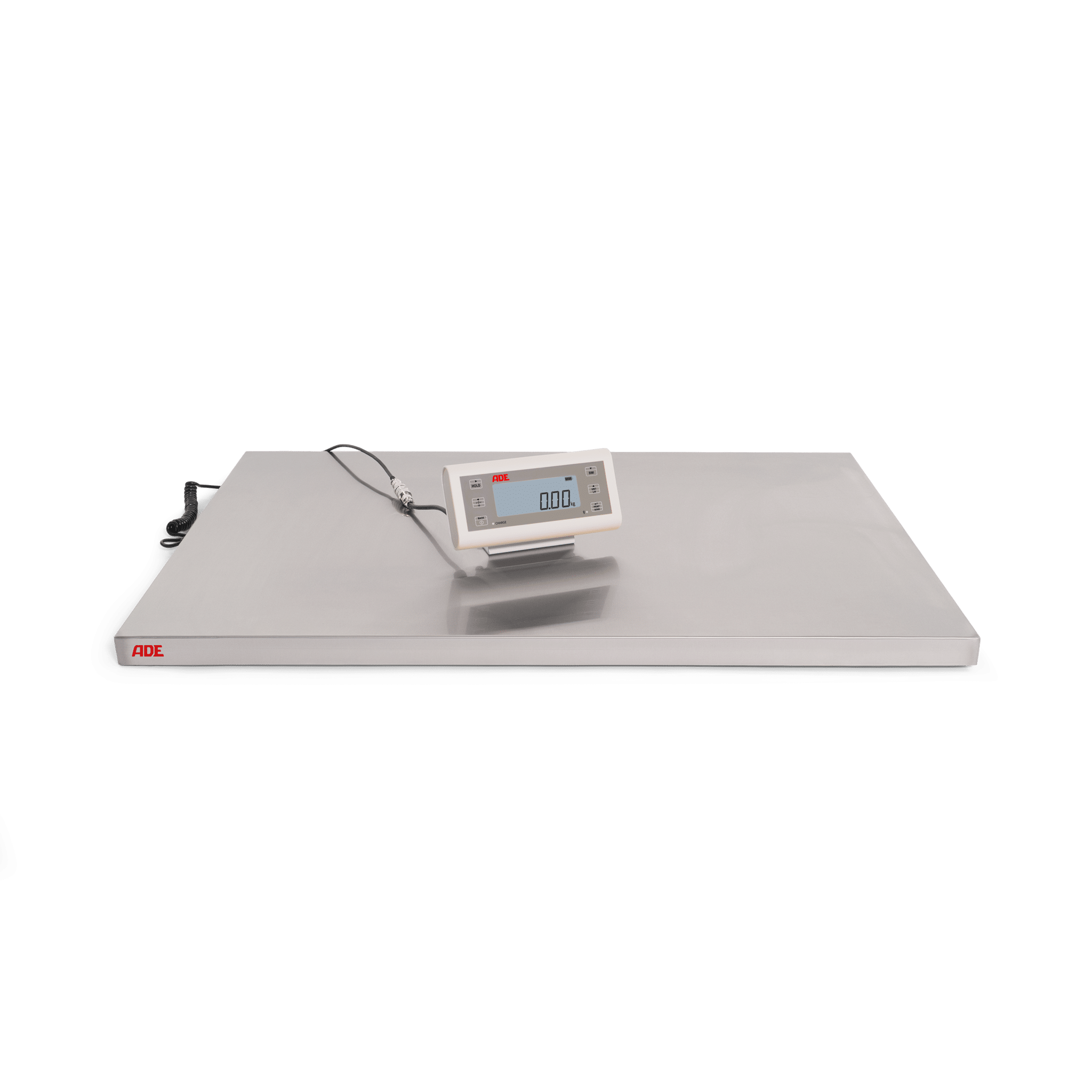 - Komplett montierte Wägebrücke mit großem LCD-Display, Ziffernhöhe 23mm, mit Hintergrundbeleuchtung